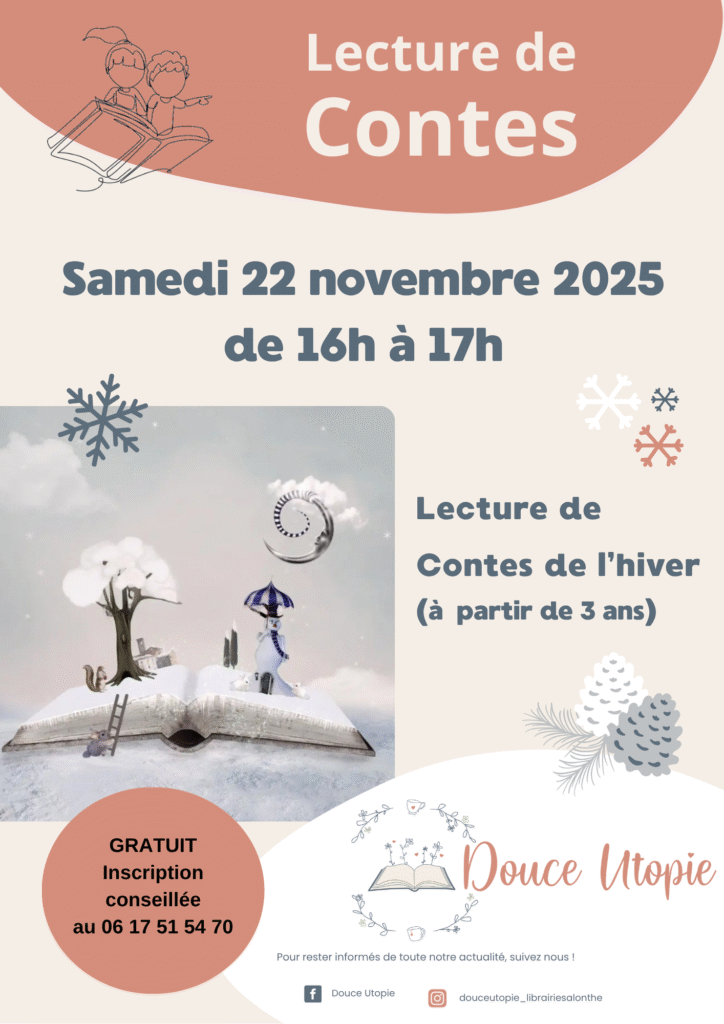 Lecture de contes Accueil / Agenda des manifestations / Date samedi 22 novembre 2025 Horaires 16h00 - 17h00