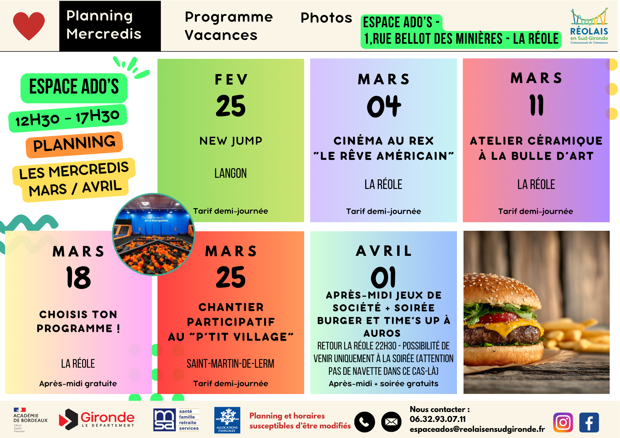 Un planning est proposé à chaque période de vacances et les jeunes peuvent s’inscrire aux journées qui les intéresse.