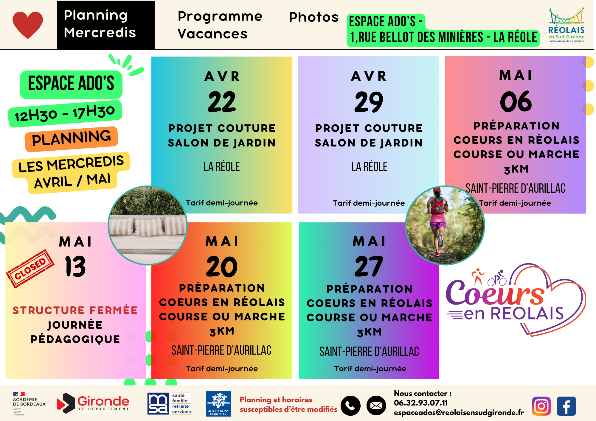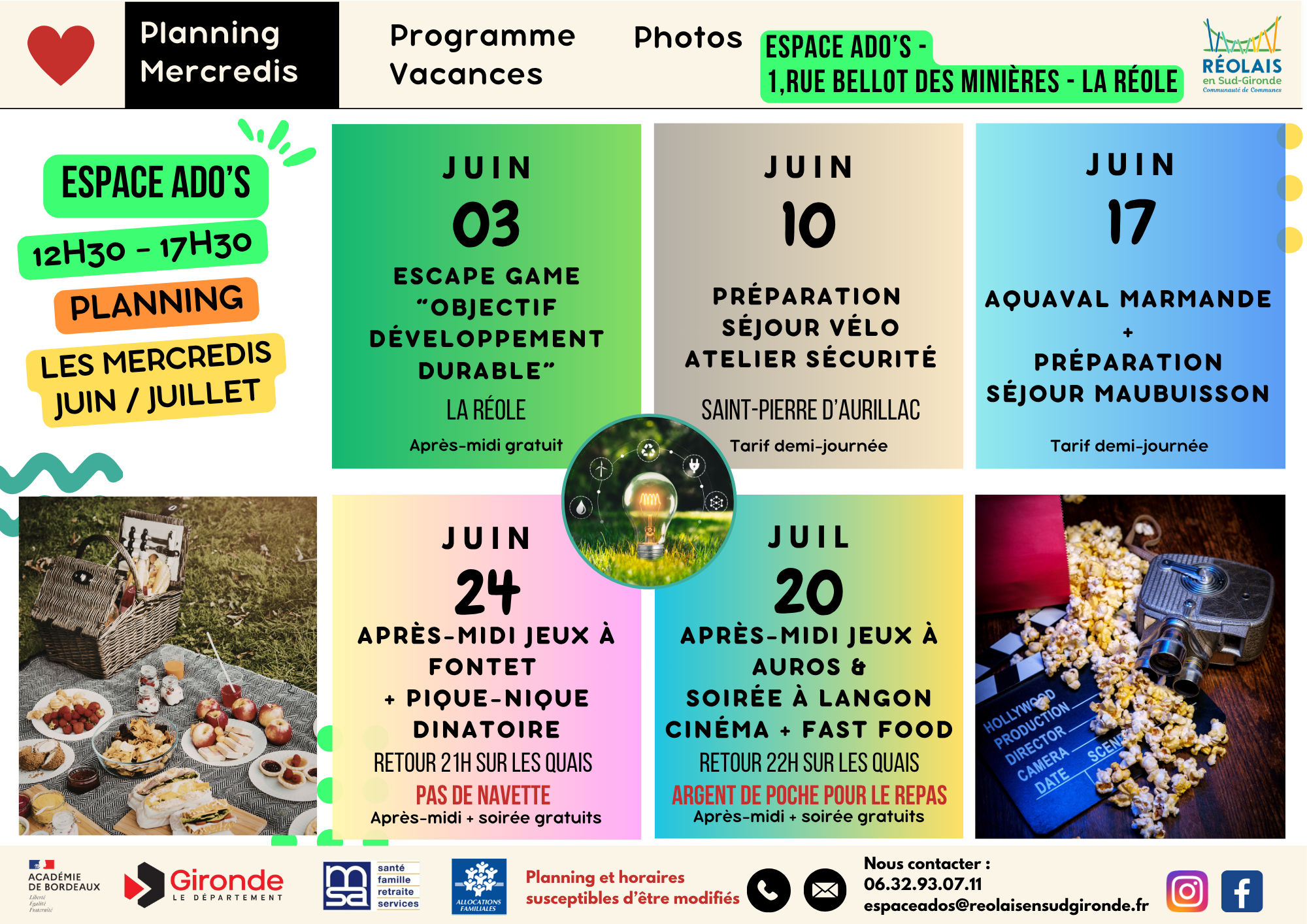 Un planning est proposé à chaque période de vacances et les jeunes peuvent s’inscrire aux journées qui les intéresse.